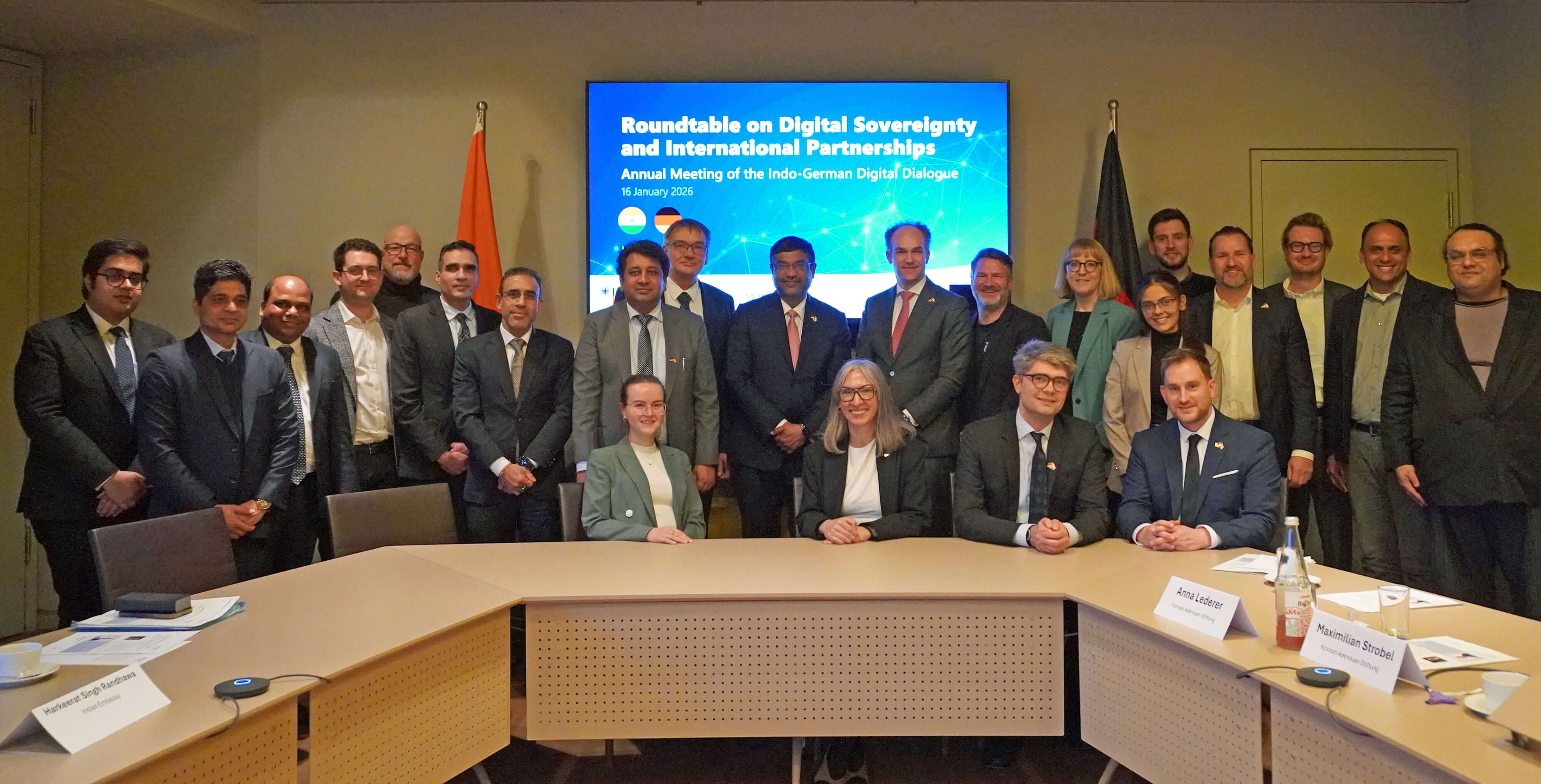 Ein weiterer Roundtable widmete sich der digitalen Souveränität. Hier kamen politische Entscheidungsträgerinnen und -träger, Forschende sowie Vertreterinnen und Vertreter der Wirtschaft zusammen, um zu erörtern, wie Indien und Deutschland als komplementäre Partner ihre digitale Resilienz stärken können – mit der Forschungstiefe Deutschlands und der Skalierbarkeit sowie dem Talentpool Indiens.